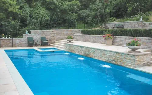 This fiberglass swimming pool offers everything you want in pool design: a splash pad, a spa and a pool but packaged in a more compact pool design. For those who want a little of everything and not willing to sacrifice quality, you will find this to be the perfect backyard pool.